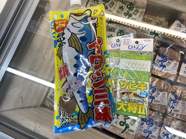 エサは【マイワシ三昧】。キャップ付きで手が汚れにくい上、常温保存もOKな便利なエサです。予備エサとして常備してもいいですね!