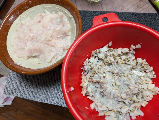 ヒラメのすり身と、レンコンのすりおろし+刻みレンコンを合わせて焼きます!