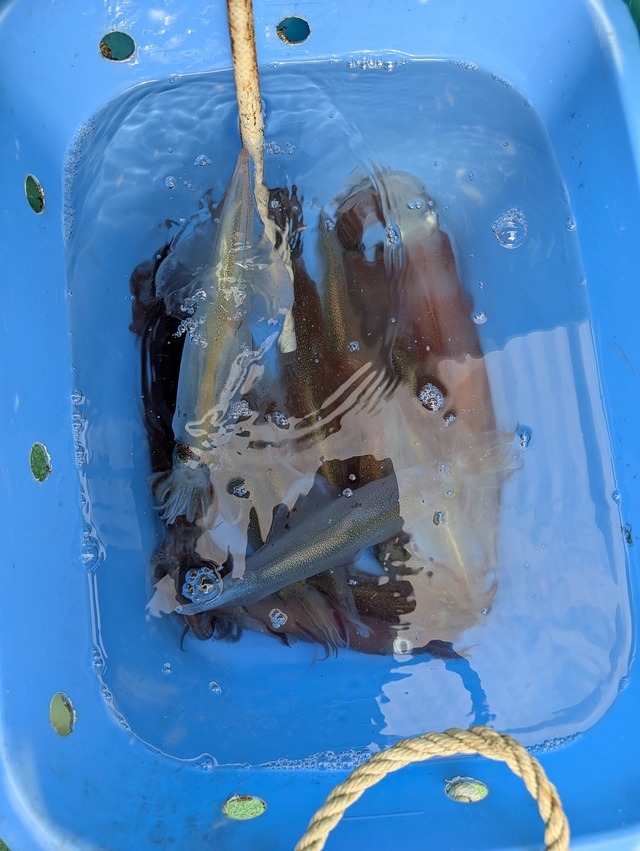 ポイントは行程2時間弱のいわき沖200mライン。まだ群れが固まっていないのか?ポツポツとイカの乗りを拾いメスのヤリイカ主体で10杯・スルメイカ2杯の釣果でした。