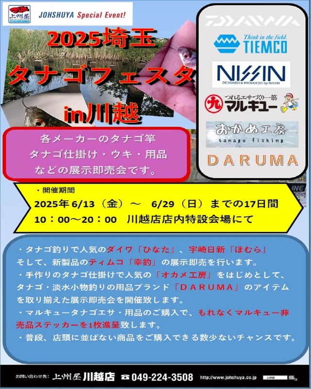 そんな多くのお客様をサポートすべく、今年も川越店で「タナゴイベント」を開催致します。
