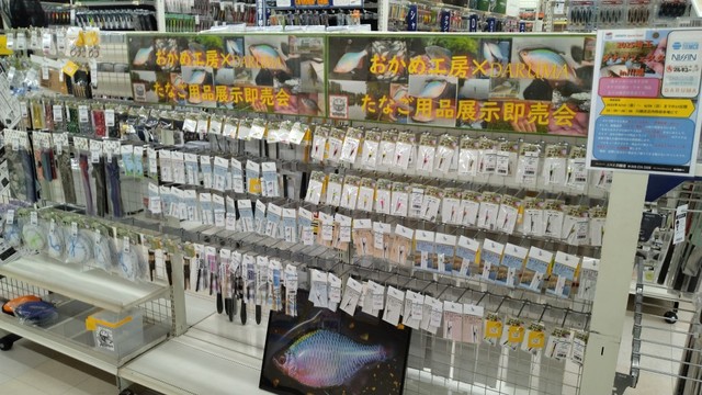 また、オカメ工房・DARUMA・RGMの仕掛けや用品、マルキューのタナゴ専用エサまでも豊富にラインナップして展示即売会を行います。