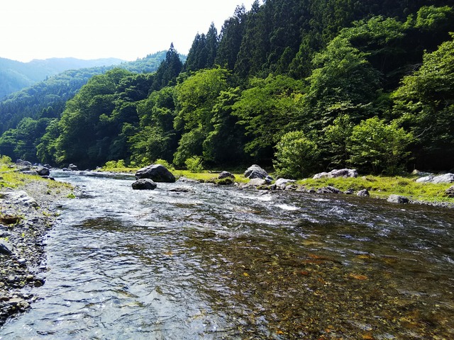 スタッフ川口です。6月9日(月)神流川南甘漁協管轄エリアに鮎釣りに行ってきました。解禁したばかりなのでおとり屋さんは朝混雑してました。空くのを待って日釣り券とおとりを購入。状況を聞くと上流のほうが石色もよく釣れているとの事。上流部は混雑しそうだったので混雑を避けて№21番の様子を見に行き空いていたので№21で竿を出すことに。川に降りられるスロープ近くに車を止めてそこから上流部へ200m位の所で今期初の友釣りスタート!朝のうちは水温が低く厳しいかな?と思いましたが開始1分で足元から3m位の浅場の波立ちを泳がせていると勢い良く追われた直後に明確なアタリでヒット!サイズは小ぶりなわりに当たりも明確でスピード感のある引き。これが今年から放流した新種なのか?小さくても体高があり綺麗な魚体で香りもいい個体でした。幸先よくかかったのでここから~と思いましたが、そんなに甘くはなくポイントの傾向もイマイチ掴めず苦戦。ポイントによっては出し掛かりもありましたが、釣り返しが難しく釣果も伸びず。遅いお昼を午後2時に食べたところで少し肌寒くなってきてしまったのでそのまま終了としました。狭いエリアを行ったり来たりする出来ることなら歩きたくない釣法なのでツ抜に届かず釣果は厳しかったですが、香りも良く引きもアタリもいい鮎が釣れる神流川。今後に期待したいところです♪