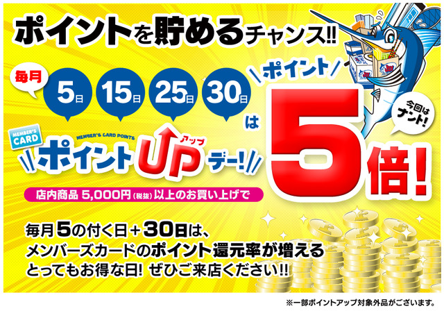 毎月5の付く日と30日(5日、15日、25日、30日)はポイントアップデー!