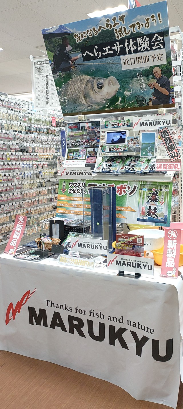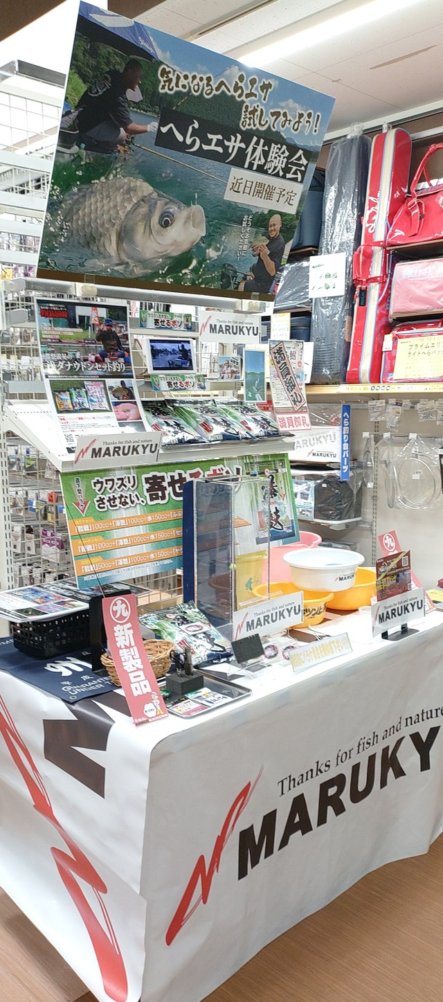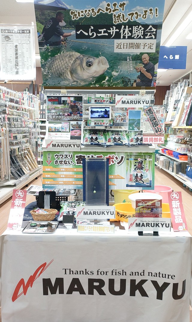 近日、当店池袋店へら鮒特設会場にてへら鮒担当中村(㊥)をメーンにマルキユー 新製品 へら鮒バラケエサ