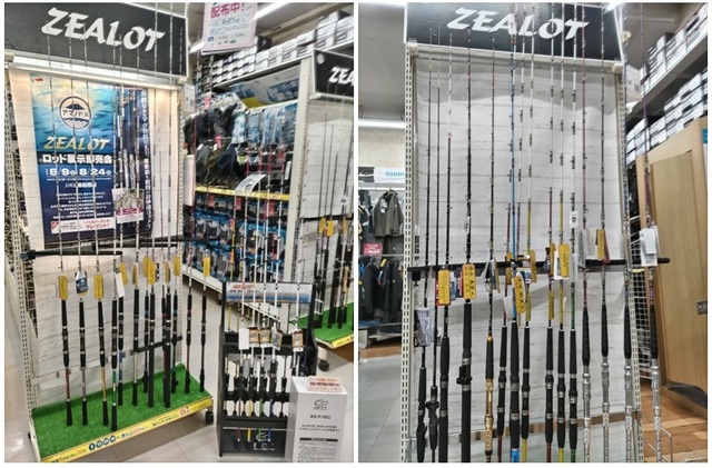 堤防で使う穴釣り用の竿から、大型青物、大型根魚まで狙えるロッドを50本以上展示いたしております。