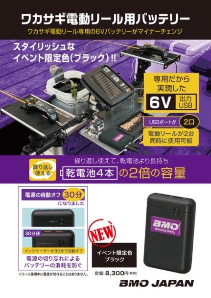 11/22 甲府ワカサギフェスタ におきましてBMOジャパンブースにてイベント限定モデルのワカサギリール台 ブラックバージョンとワカサギ電動リール専用バッテリーのブラックバージョンが数量限定で販売されます。