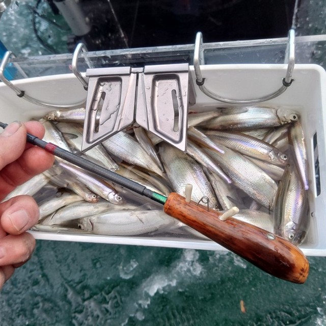1匹づつ丁寧に釣るのですが、このサイズのワカサギが乗ると手に伝わる感触が心地よいですね。