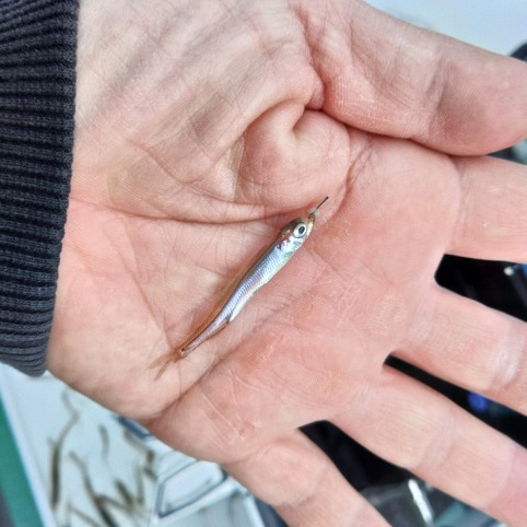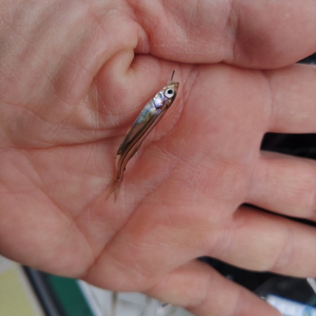 餌を入れるとさらにワラワラ寄ってくるのが当歳魚のわかさぎで、釣り開始からずっとこのサイズ。