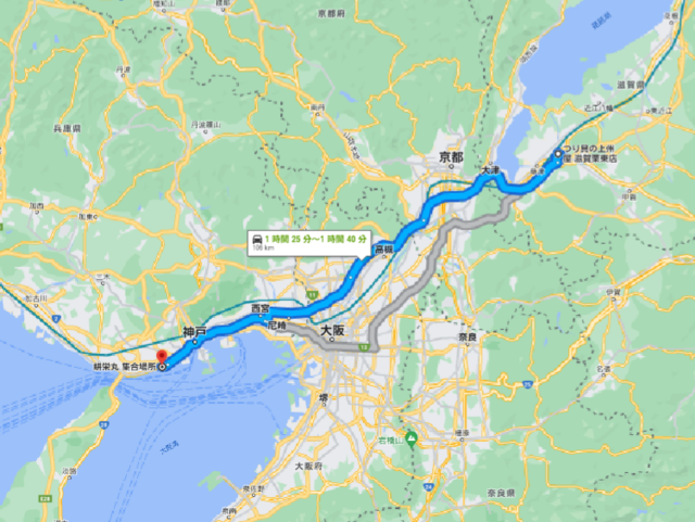 滋賀栗東店から高速道路利用で1時間30分!高速降りてすぐなのでアクセス良し。