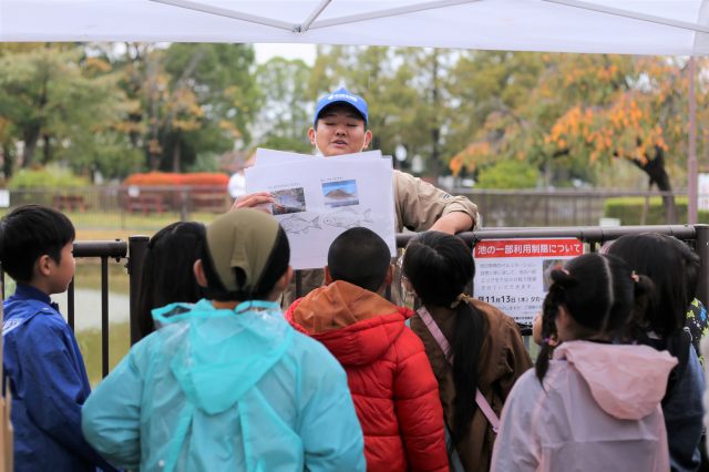 生物園のおにいさん&おねえさんが釣れた魚の生態や特徴を説明してくれます。