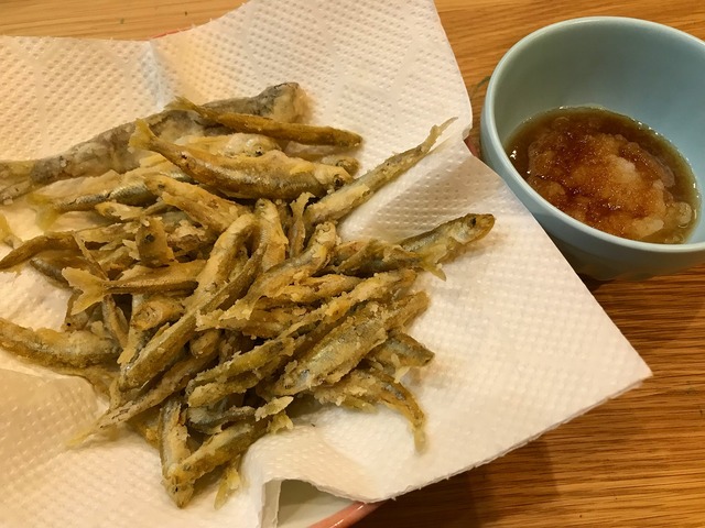 ワカサギの竜田揚げです。おろしポン酢と相性が抜群です♪