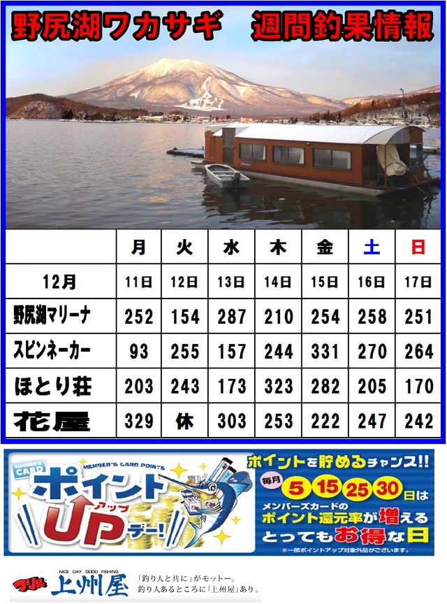 いよいよ今週末11月1日(土)野尻湖ワカサギ解禁です!