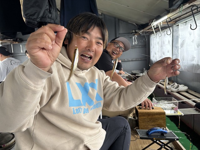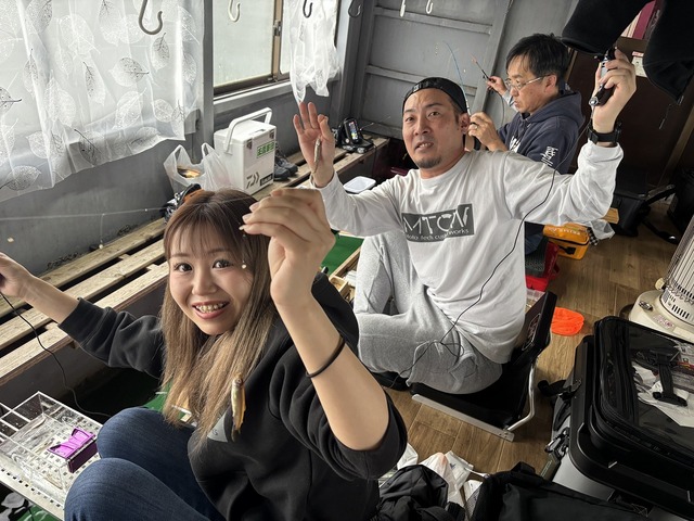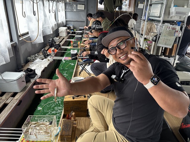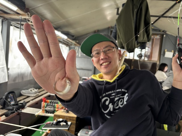 船内では続々と良型のワカサギが釣り上がります!!