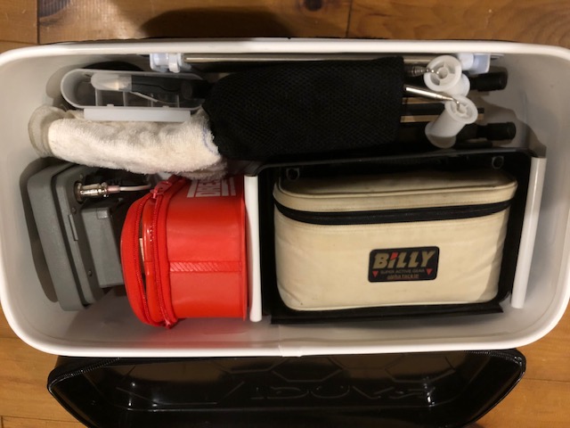 エサポーチの中はエサ箱や、当日使うエサを入れています。