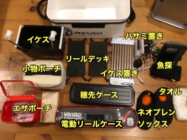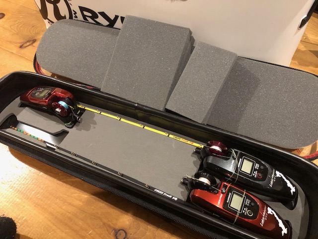 その上に穂先ケースと電動リールケースを置きます。
