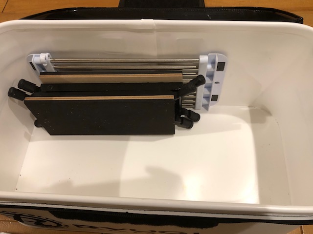 まずはリールデッキ×2個とスライドイケス置きをこんな感じで収納。