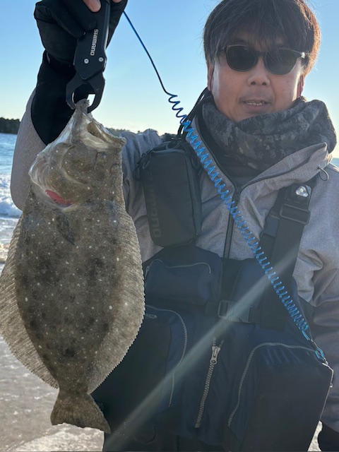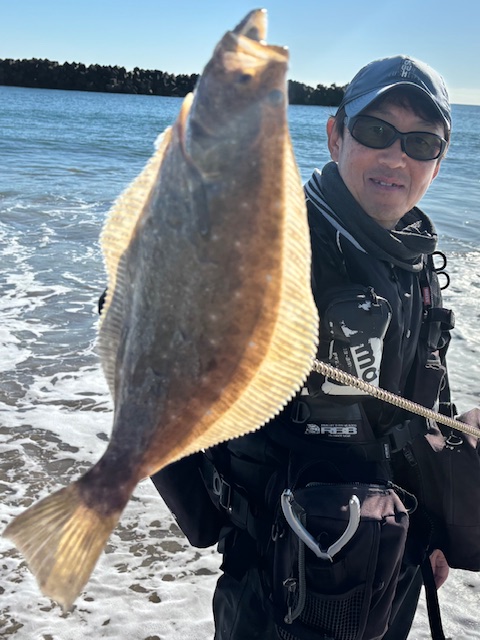 現地待ち合わせしたツムさんはなんと!開始1キャスト目でヒラメキャッチ!