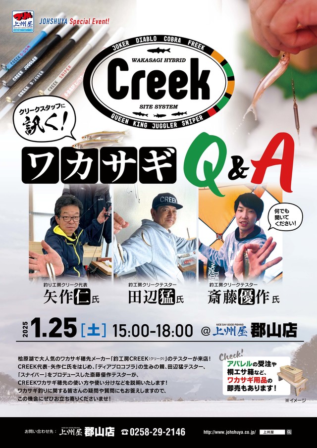 2025年1月25日(土)に開催される「クリーク・ワカサギQ&A」にて販売する穂先のご案内です。