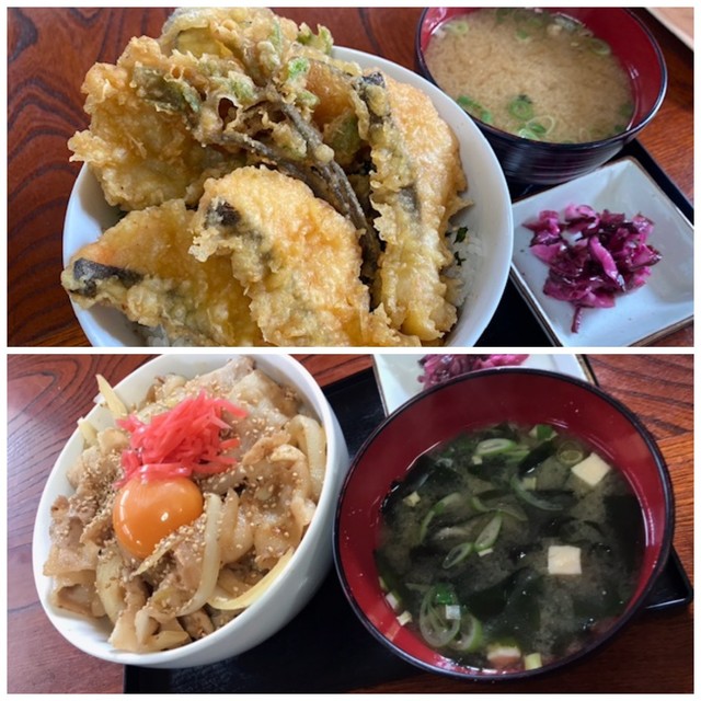 お昼は名物サクラマス天丼、スタミナ丼