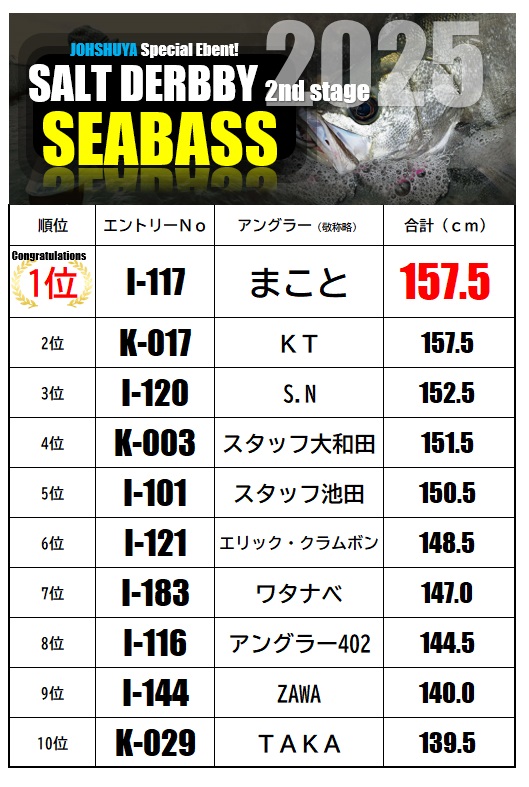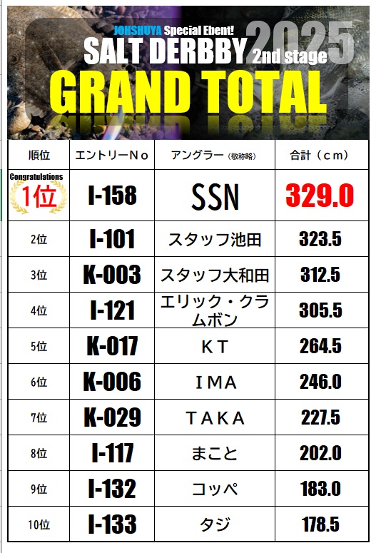 2025ソルトダービー2ndステージ結果発表!