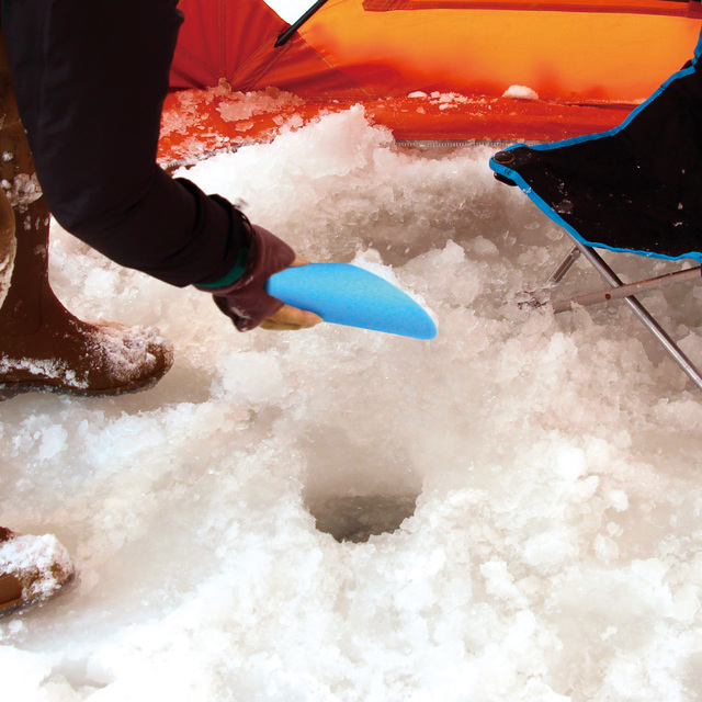 氷上で雪をならして釣り座周りがスッキリ!