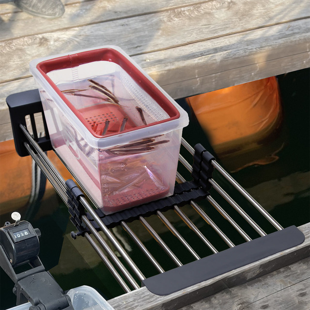 ドーム船のスリットに設置してイケスを置けるラックです!