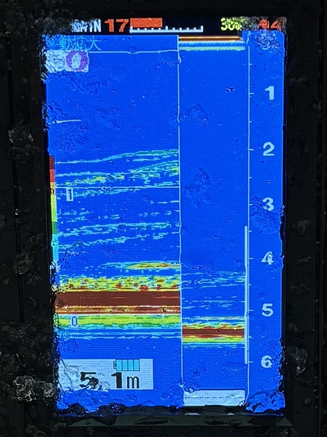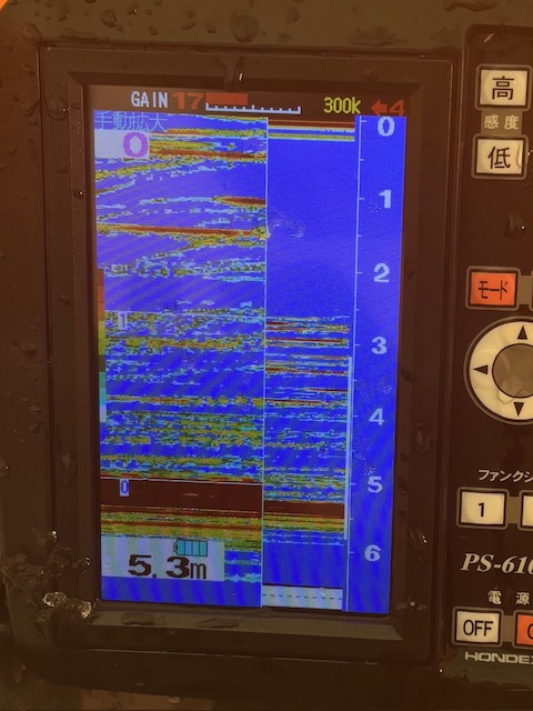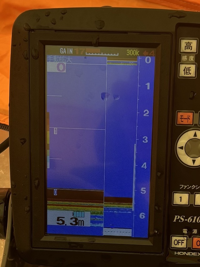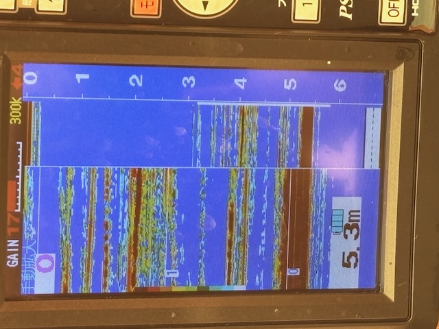 今回入ったポイントは水深5.5mくらい。