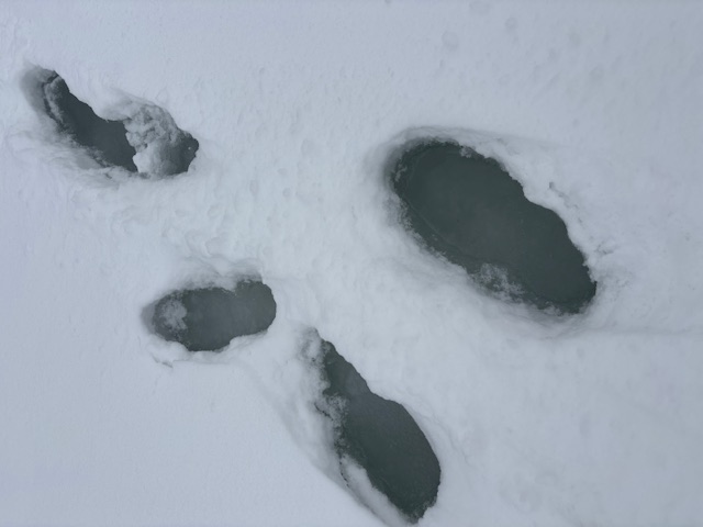 氷の状態ですが、モービル道はガチガチに踏み固められてますが、ちょっと外れるとくるぶしから上までズボッと入る感じです。