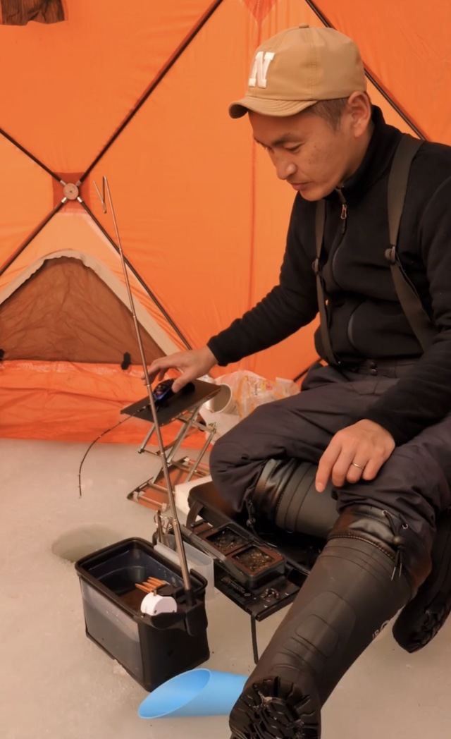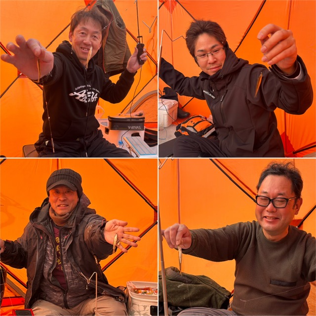 お隣のテントは和気あいあいと楽しそうでしたが、こっちのテントでは斉藤・池田のワカサギバトルが勃発~!