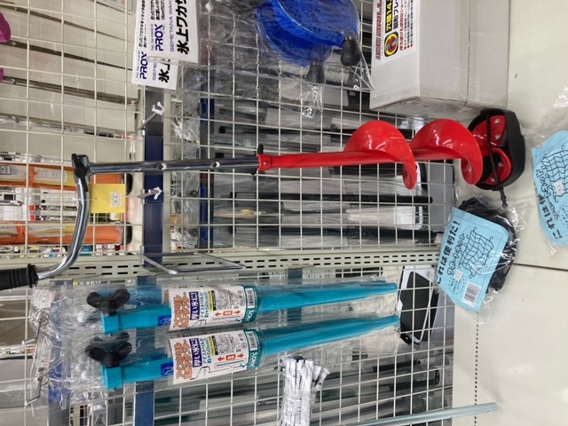 ジャンボスレーにかんじき、アイスドリルなど穴釣り用品も入荷しています。