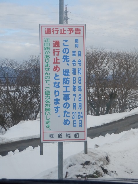 九頭竜川右岸側のえちぜん鉄道橋から中角周辺まで工事予告の看板があります。