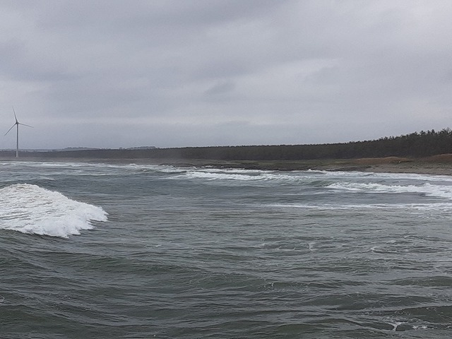 当日は荒れ模様で波が足元をさらう事も。濡れていると滑るので注意。