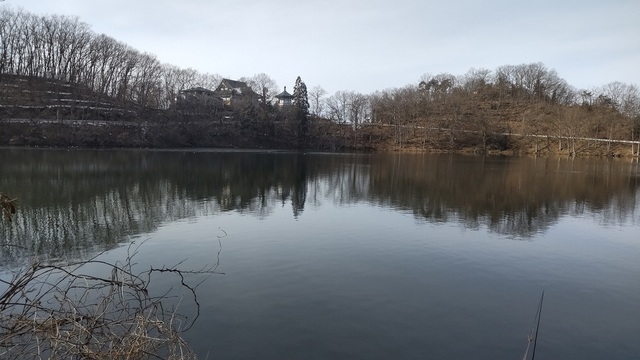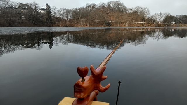 朝方の冷え込みにより沼半分が凍っている状態。今回はいつもの堰堤ではなくシーズンなら超メジャーポイントの出っ張りへ。今年はこの時期ですでに満水状態で釣り座を構えるのも難しい場所ばかりですが今回は最近入座してる釣り人を見かけない超メジャーポイントで釣り座を構えます!現状では浅場向き、深場向きに一人ずつで二人入るといっぱいいっぱいです。こちらの深場向きに入ったのですが氷まで数メートル笑