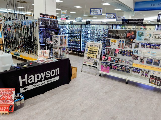 ハピソンのタチウオ釣りアイテム「タチフロート」や、人気の「チェストライト」や定番の「エアポンプ」に加え、話題の「津本式 計測マルチ絞め具」なども実際に見て確かめてご購入いただけます!