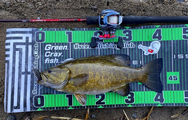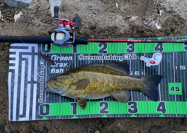 その後移動し沈み蟲1.8インチの0.45gのネイルリグで2本目をGET!!
