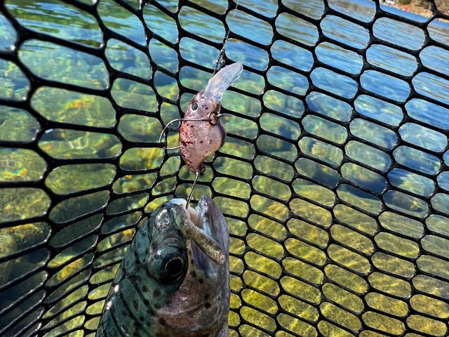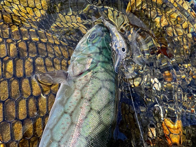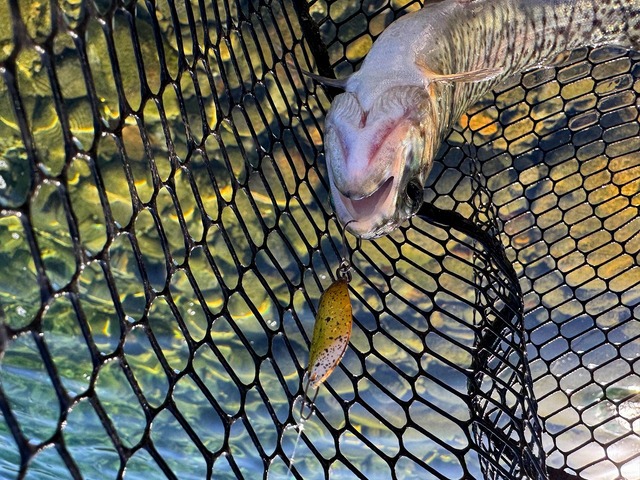 水面直下の絶妙なレンジ感を巻いてくると連発バイト~!