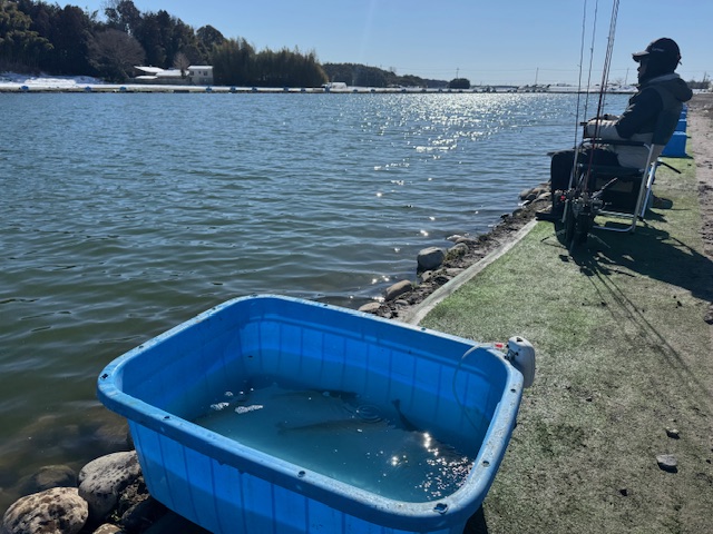 魚はその場でリリースせずに桶の中へ!