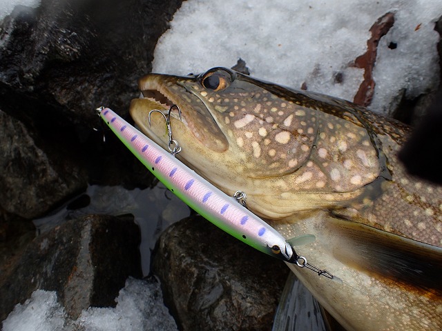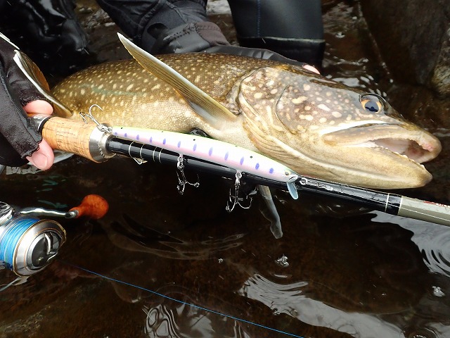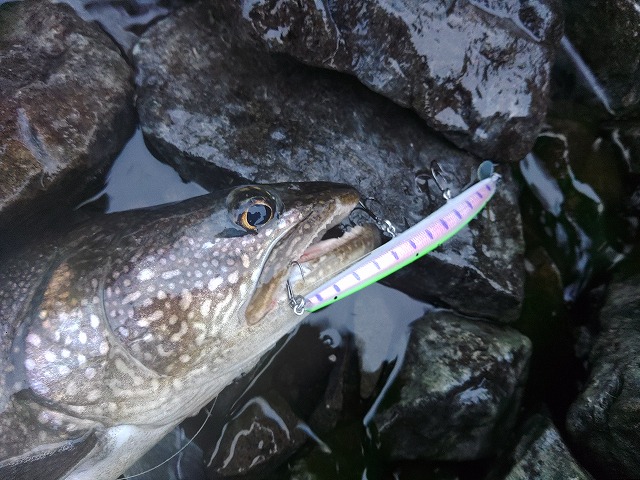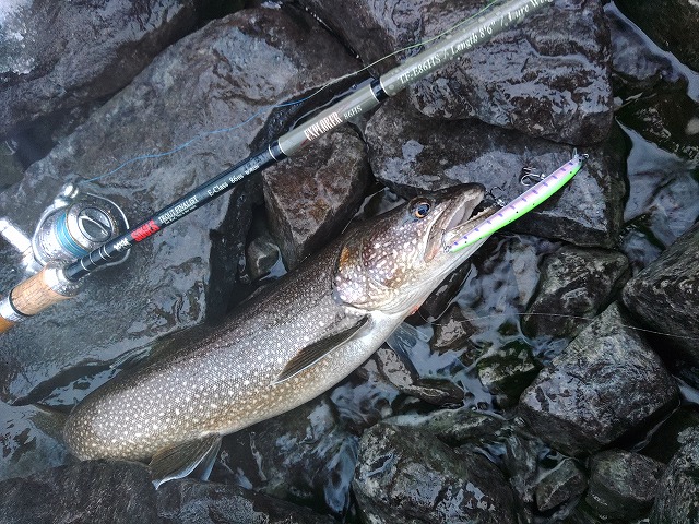 今度はフッキングも決まり50ちょい程のレイクトラウトをキャッチ。