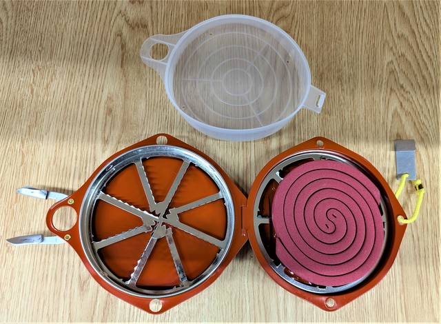 ※点火した線香は器具の中央に置いて下さい。 円周の金属に接すると火が消える事がございます/フタの留め金は2ヶ所完全に止めてください。 吊り金を丸穴に必ず通して使用して下さい。 (作業中に蓋が開き、火が落ちて森林火災になることを防止するため)