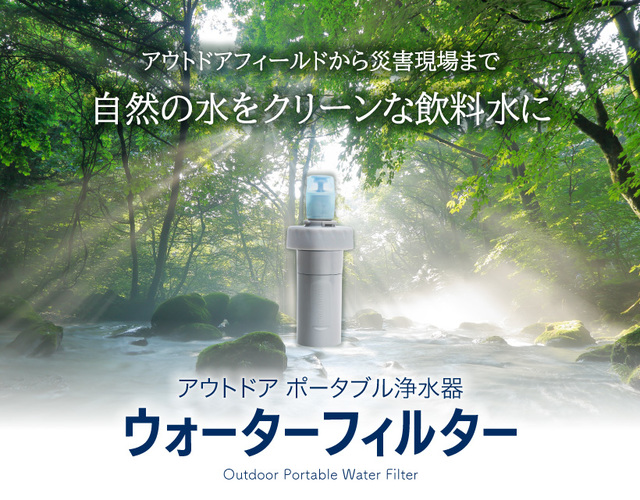 川や湖などの水に含まれる微生物や濁りなどを除去し、安全な飲料水を作るポータブル浄水器。