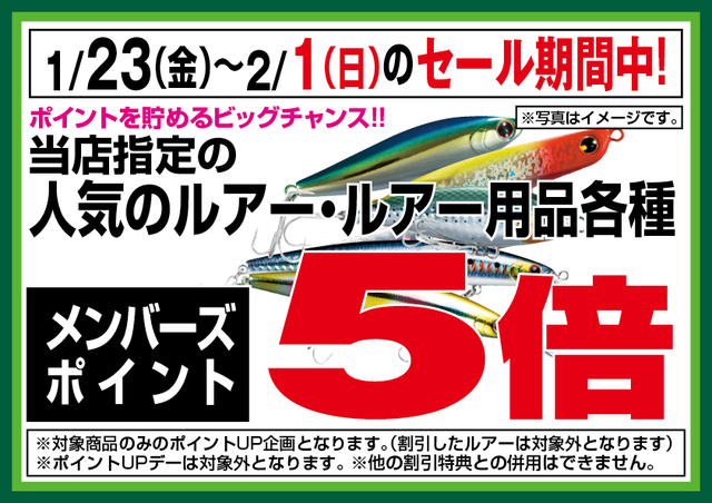 ルアー・ルアー用品各種が、メンバーズポイント5倍!!