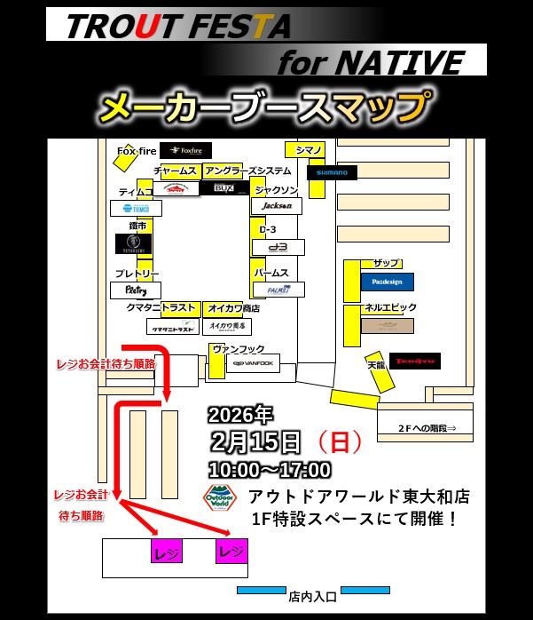 2/15(日)【西東京トラウトフェスタforネイティブ】ご来店の皆様