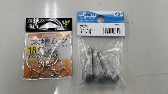 リーダーに15号の六角オモリをフリーで通して、その先にサルカン。