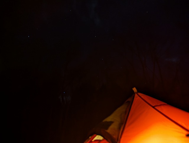 1人宴会を繰り広げながらも空を見上げると...美しい星々が...♪冬は空気が澄んでいて星が綺麗に見えます。いい夜だ...爆風止まんけど...笑