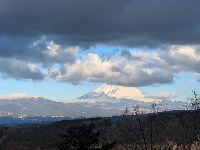 朝目が覚めると、風は穏やかに。富士山は雲が少しかかっていますね♪ここから見える富士山も素晴らしいんですよ♪