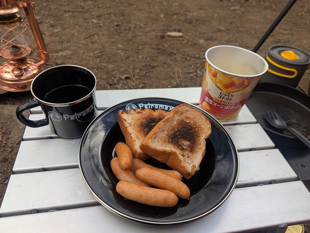 別皿に盛っていた目玉焼き、熱々の紅茶、全部地面にぶちまけて完全に「フリーズ」状態...茶色い朝ごはんとなりましたが!茶色いものは美味いから(T_T)