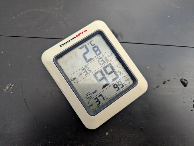 ぶちまけた紅茶が温度計にかかり最高気温は不明(13℃なんかじゃないよ!)最低限ー3.5℃。想定していたよりちょっと寒かったです。