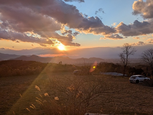 沈みゆく夕日...。この日は少し雲が出ていました。ここから見る夕日は本当に絶品!neguraでの夕日を見るためにいらっしゃるキャンパーさんも多いんです♪もちろん小島もその1人!