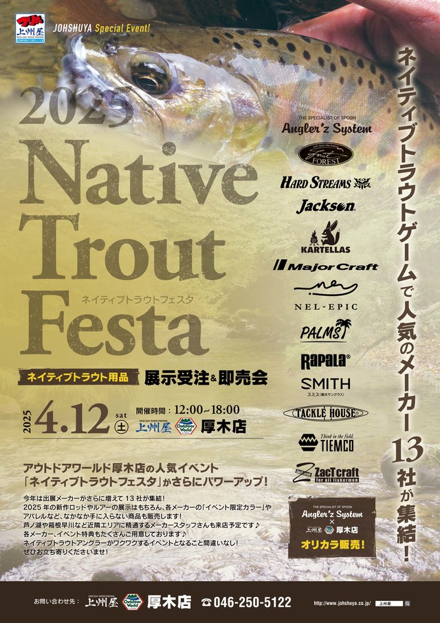 いよいよ今週末4/12(土)12時から開催致します≪2025ネイティブトラウトフェスタ≫の詳細が各メーカーから続々届いてきてますので情報公開致します!