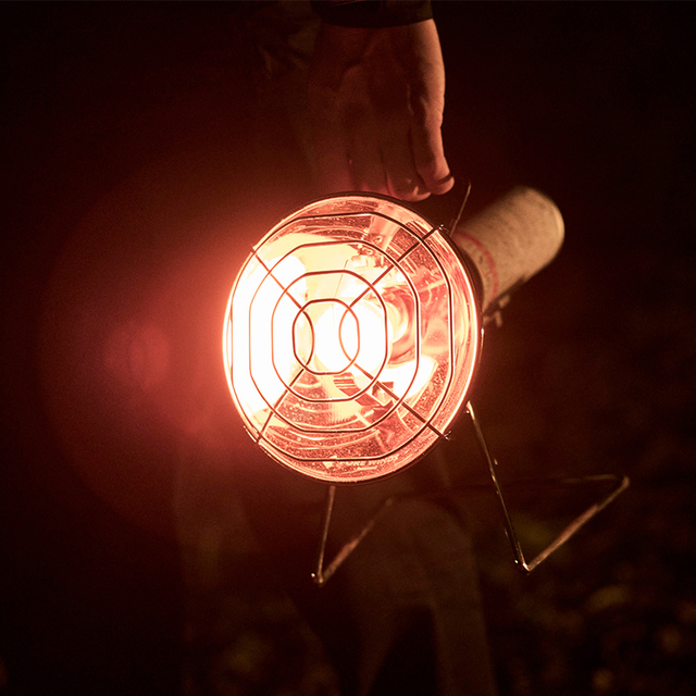 カセットガスを燃料とする〈FORE WINDS/イワタニ〉アウトドア専用ヒーター。
